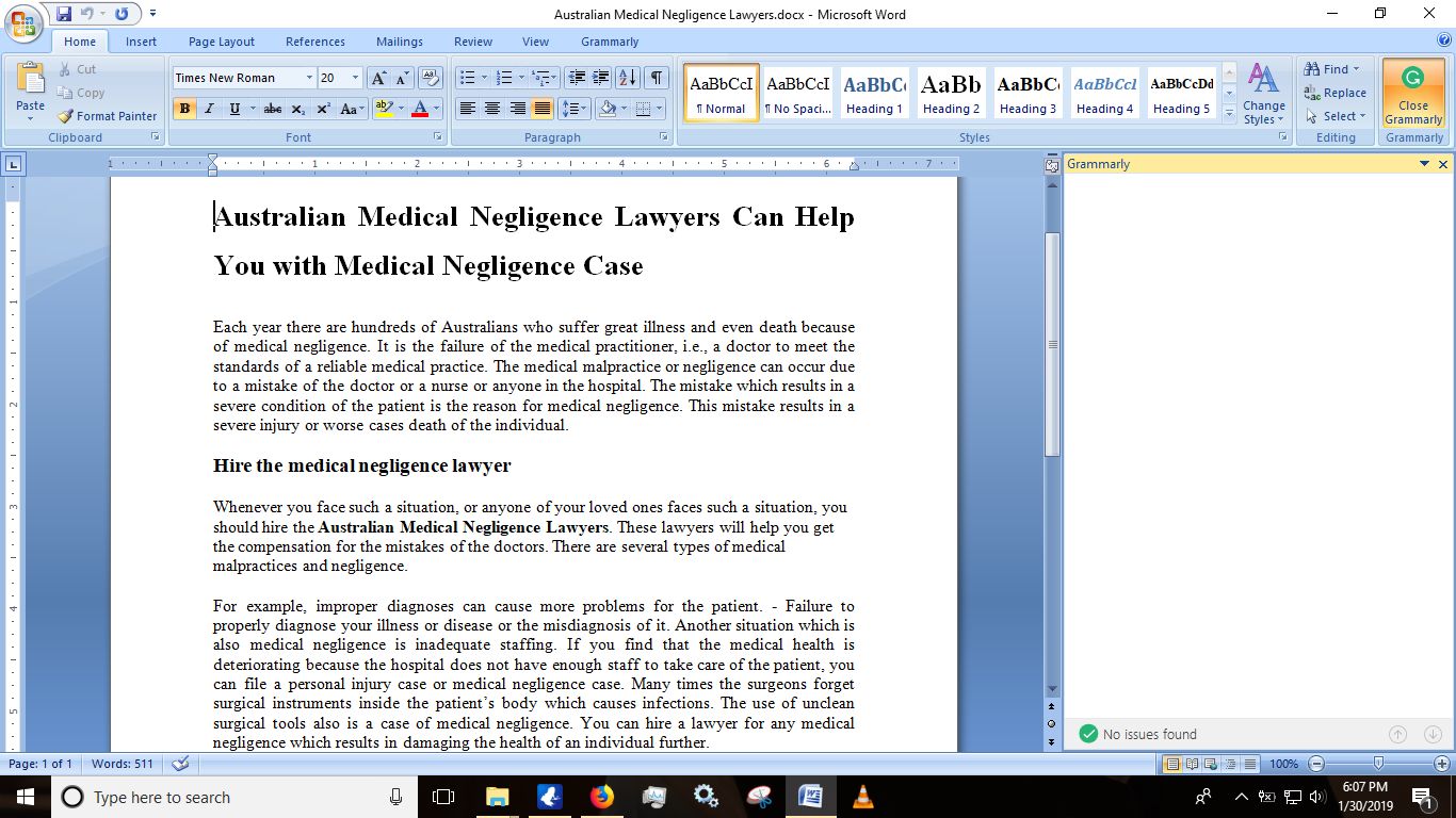 You should understand that the laws of medical negligence in Australia are very complex. If you think that you can file a case against the doctor or the hospital staff without a lawyer, you are wrong. The medical negligence lawyers are the ones who are experts in this field. Always find the medical negligence lawyers and not any common lawyer.