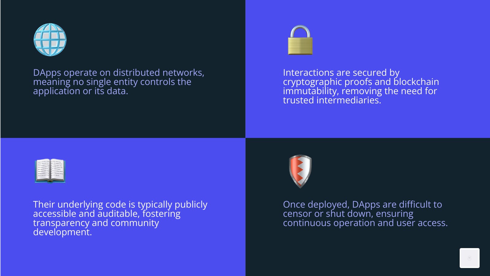 The decentralized nature of DApps brings several compelling advantages: