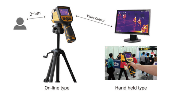The portable and online imager (TE-W300 and TE-W400) can be fixed on a tripod and placed at the entrance of a public place with a massive flow of people. It can output the image to the display without the direct operation of personnel. The tested staff does not need to stay. As long as they walk in front of the imager, the infrared thermal imager can automatically capture the temperature of the human body. When the temperature exceeds the warning value, the instrument will give an alarm.
