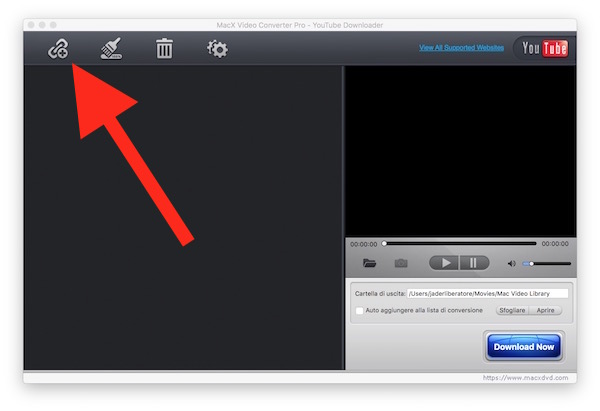 - open MacX Video Converter and tap on the YouTube / URL icon that appears at the top