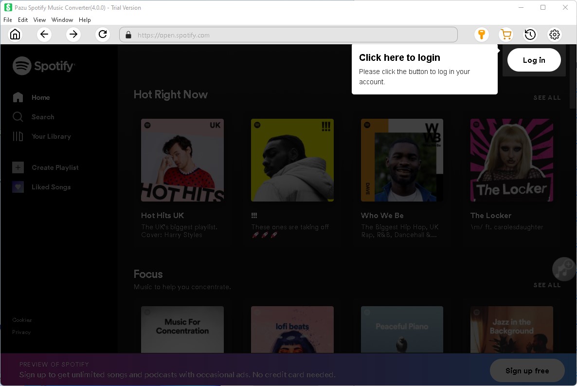 You won’t need any premium account of Spotify to download music by using Pazu Spotify Converter. You just need a simple free account and you are good to go. You just have to download the software and then open Spotify to select the songs of your choice to download them in bulk.