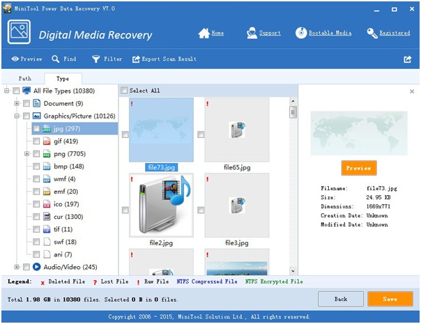 Like many data recovery software on the internet, MiniTool Power Data Recovery Free Edition can help us recover accidentally deleted files and files in damaged and RAW partition. However, these are only primary recovery capabilities, and I’m gonna show you what actually make Power Data Recovery Free Edition outstanding: scan and recover digital media files only, recover data from CD and DVD, and recover data even when your OS damaged and not boot