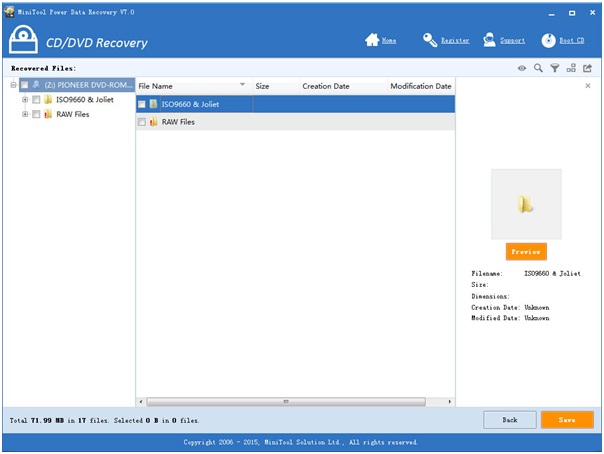 Maybe you would think it’s impossible to recover data from CD and DVD, but CD/DVD Recovery module of MiniTool Power Data Recovery could really make it possible. It deep scans CD or DVD to recover erased, deleted, and formatted files. In my test, it even recovered a small part of data from scratched CD.