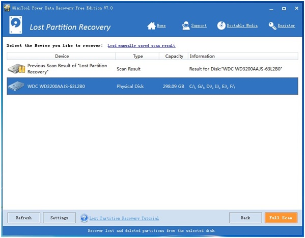 Lost Partition Recovery module of MiniTool Power Data Recovery is designed to recover data from deleted/lost partition on both local HDDs and removable devices. Generally, if you can’t find out the partition you wanna recover data from by using Damaged Partition Recovery module, you can have a try of Lost Partition Recovery.