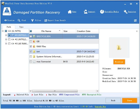 Damaged Partition Recovery module is the trump card of MiniTool Power Data Recovery. It is designed to recover data from logically damaged, formatted and RAW partition. In general, lost files could be recovered by using this module as long as the partition exists. Moreover, it gives you higher possibility to recover lost/deleted files when Undelete Recovery is not working, by the way,it recovers data from not only hard disk partition but also from memory stick, memory card, flash drive, etc.