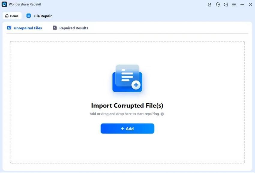 Once you enter the main online interface, click the “Add” button to access the professional online file repair interface.