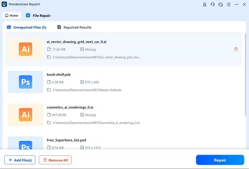 - Deep File Scanning: Repairit scans the file structure thoroughly to locate and repair all damaged areas accurately and safely.