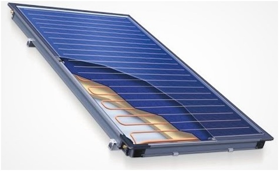 Designs vary slightly by brand, but basically, it’s a shallow box with copper coils running in it, covered with an absorbent metal plate and a transparent one.