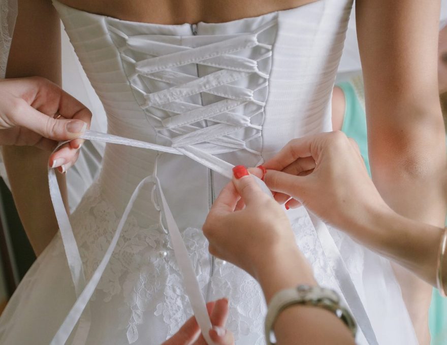 Undergarments and accessories. A strapless gown may require a specific bra or corset. Shoes, a veil, jewelry, a clutch for the reception, a wrap for outdoor photos in cooler weather. These individually small purchases add up to $300 to $1,000 that most couples forget to budget for.