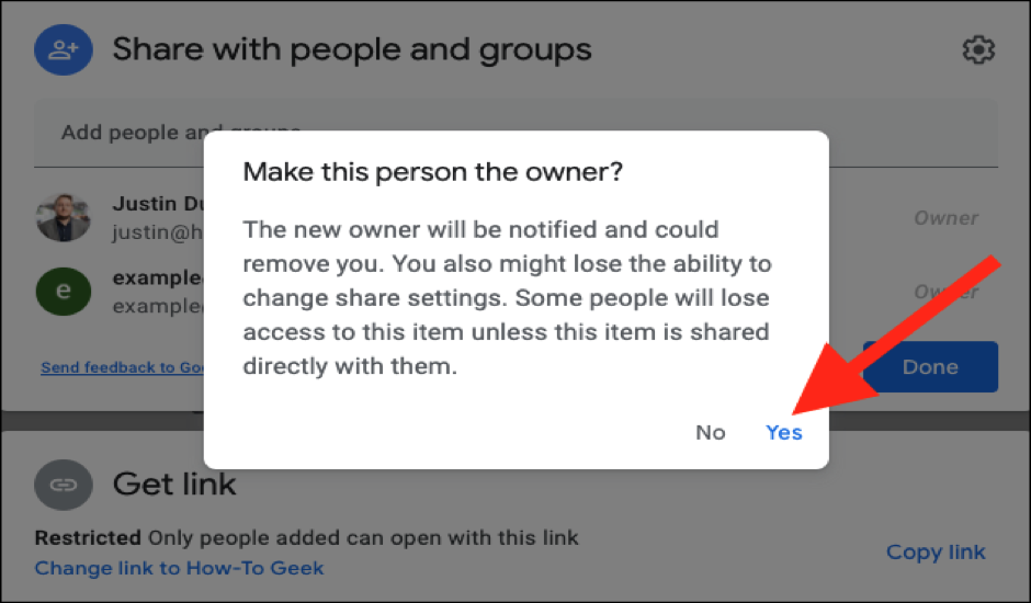 - Users can click “Transfer ownership” when they click on the “Editor” recipient.