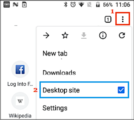- From the menu, select “Desktop site”.