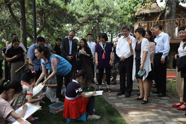 The guests attending the event came to the outdoor lawn, watched the children draw natural notes, and visited the cabin ecological environment education base. This year’s commemoration event hired 10 “interested observers” for the first time to participate in World Environment Day’s home event, and hired Tan Weiwei to lead the “Sixth Five-Year” World Environment Day theme song.